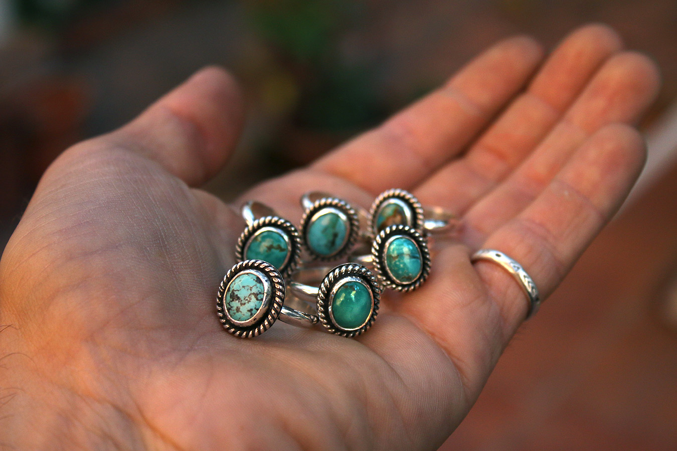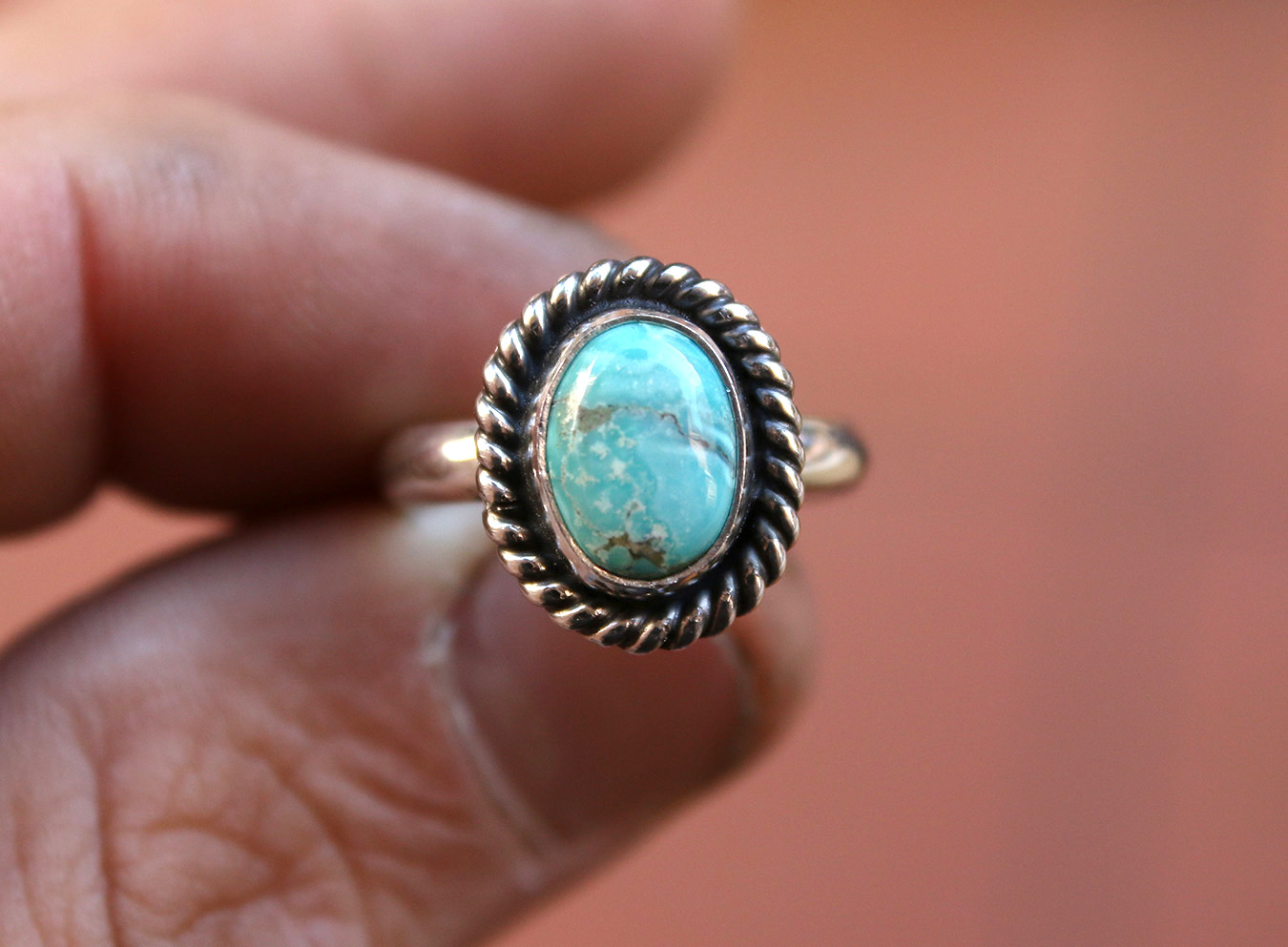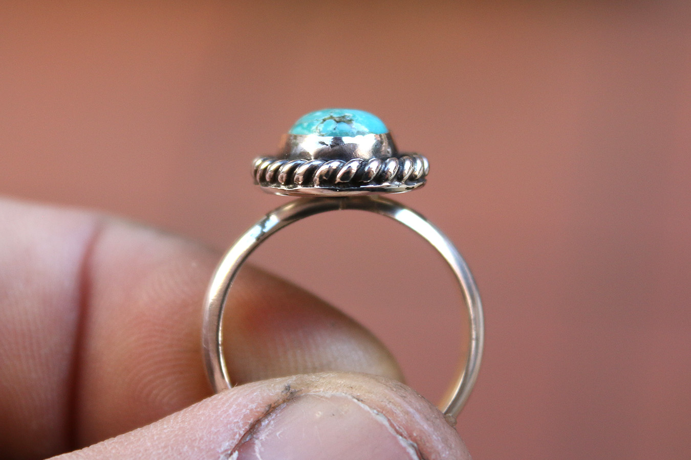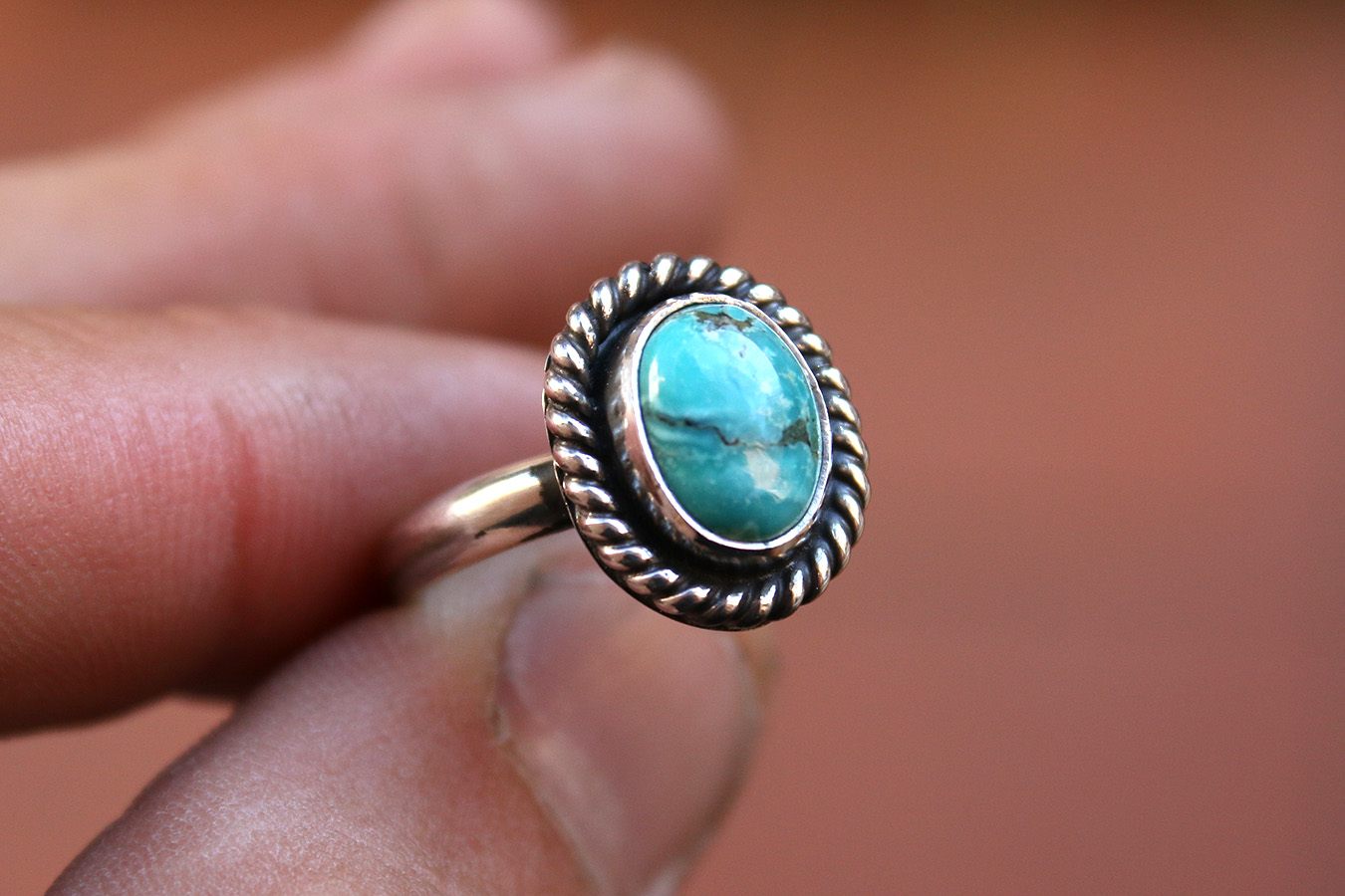 El anillo ARUMA tiene mucho estilo. Hecho con una Turquesa Tibetana envuelta con un trenzado hecho a mano de manera totalmente artesanal. Este anillo destaca por su piedra Turquesa cada una tan especial, no hay dos iguales todas tienen esos dibujos tan únicos.