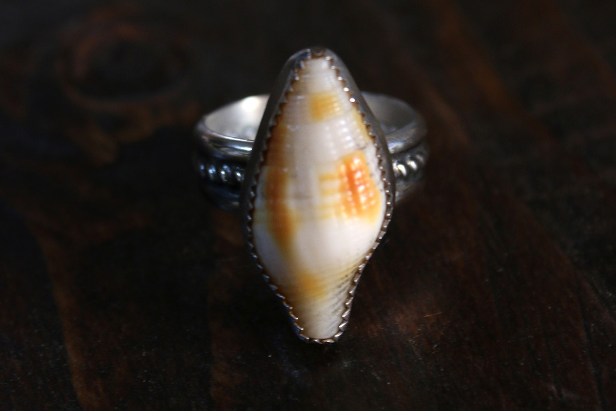Anillo hecho con un caracol marino encontrado en la playa, este anillo hará que lleves el mar siempre dentro de ti.