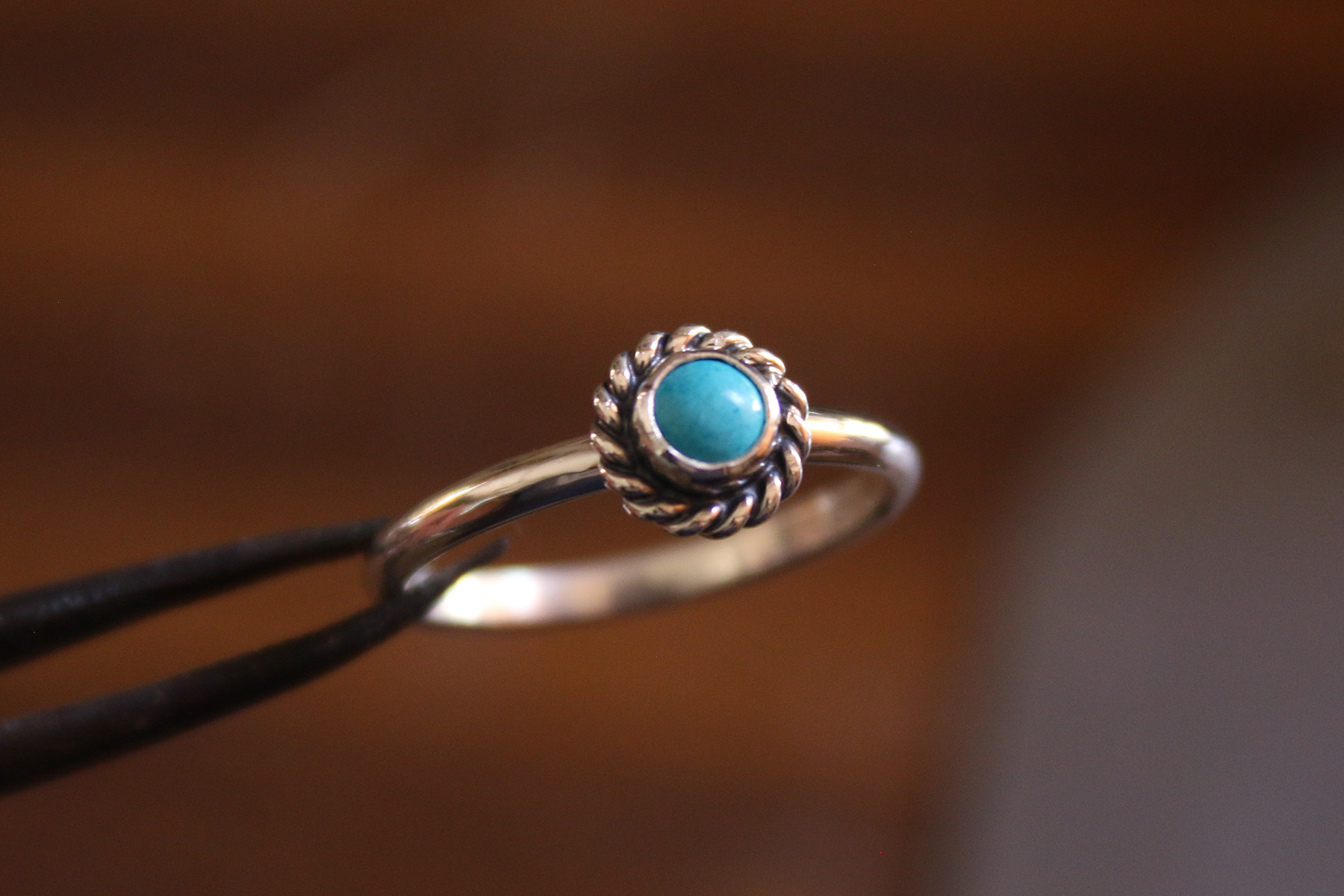 Anillo de “Turquesa” con un hilo de plata maciza trenzado que lo envuelve que recuerda el anillo de saturno, de ahí su nombre. Un anillo pequeñito y sencillo para llevarlo en tu día a día