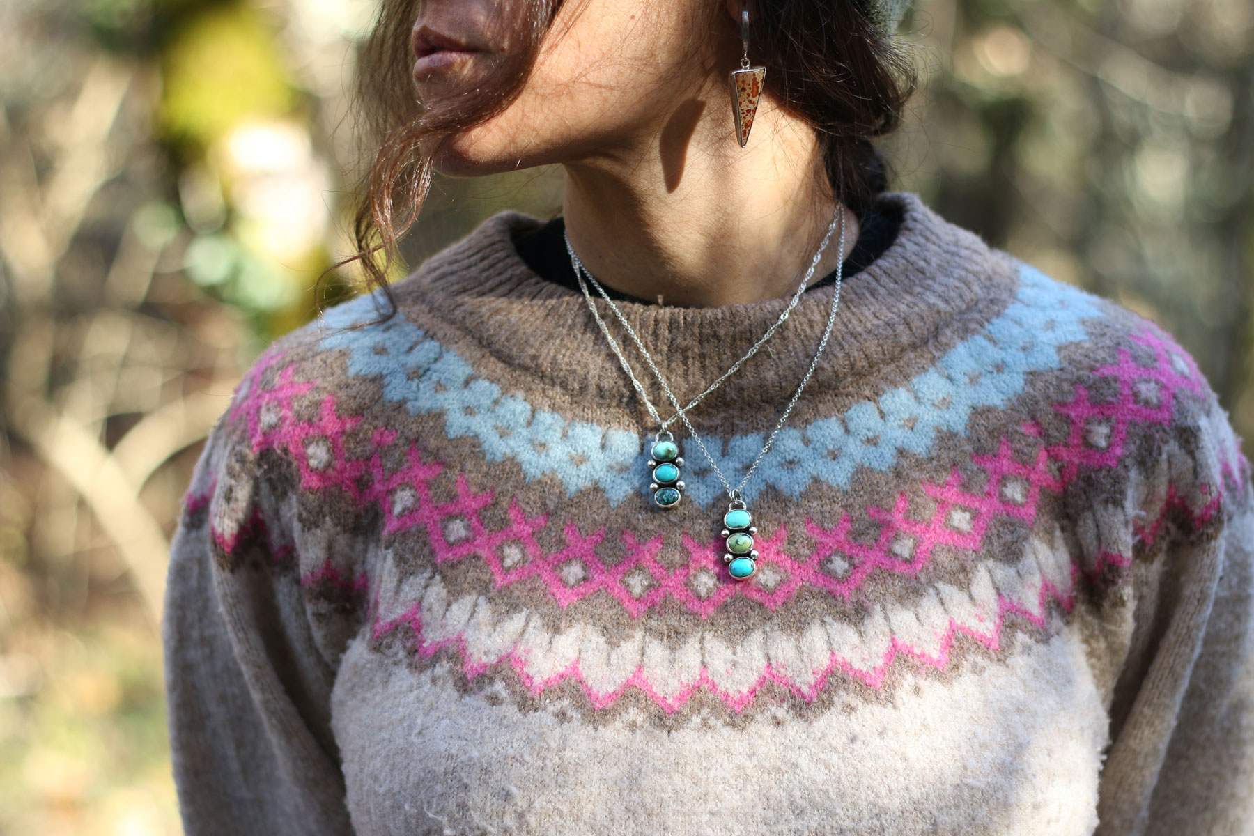 Un colgante con movimiento, hecho a mano, donde cada detalle está pensado para dejar hablar a las piedras.