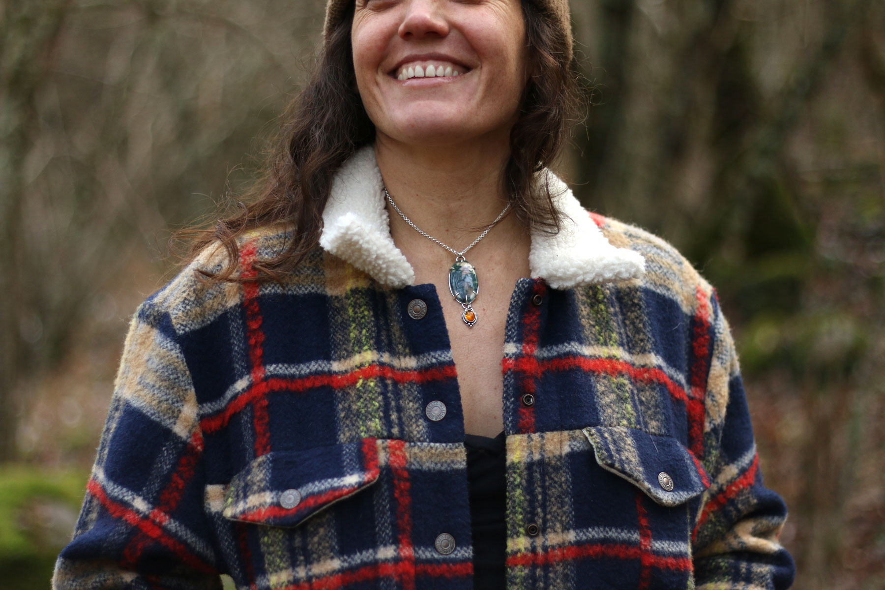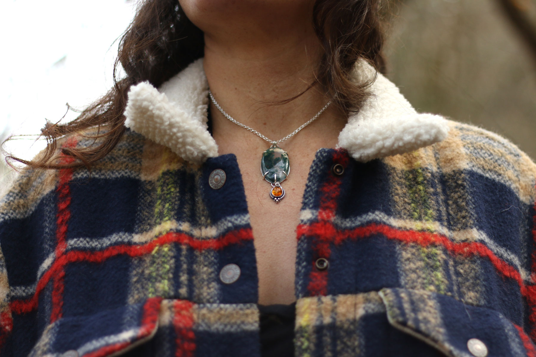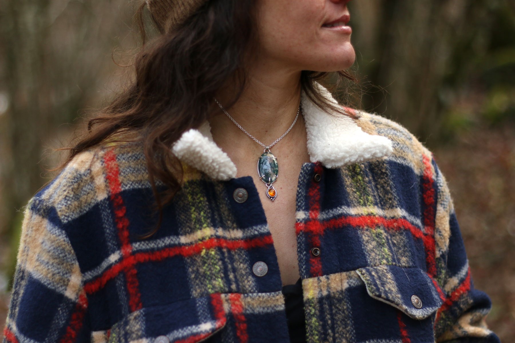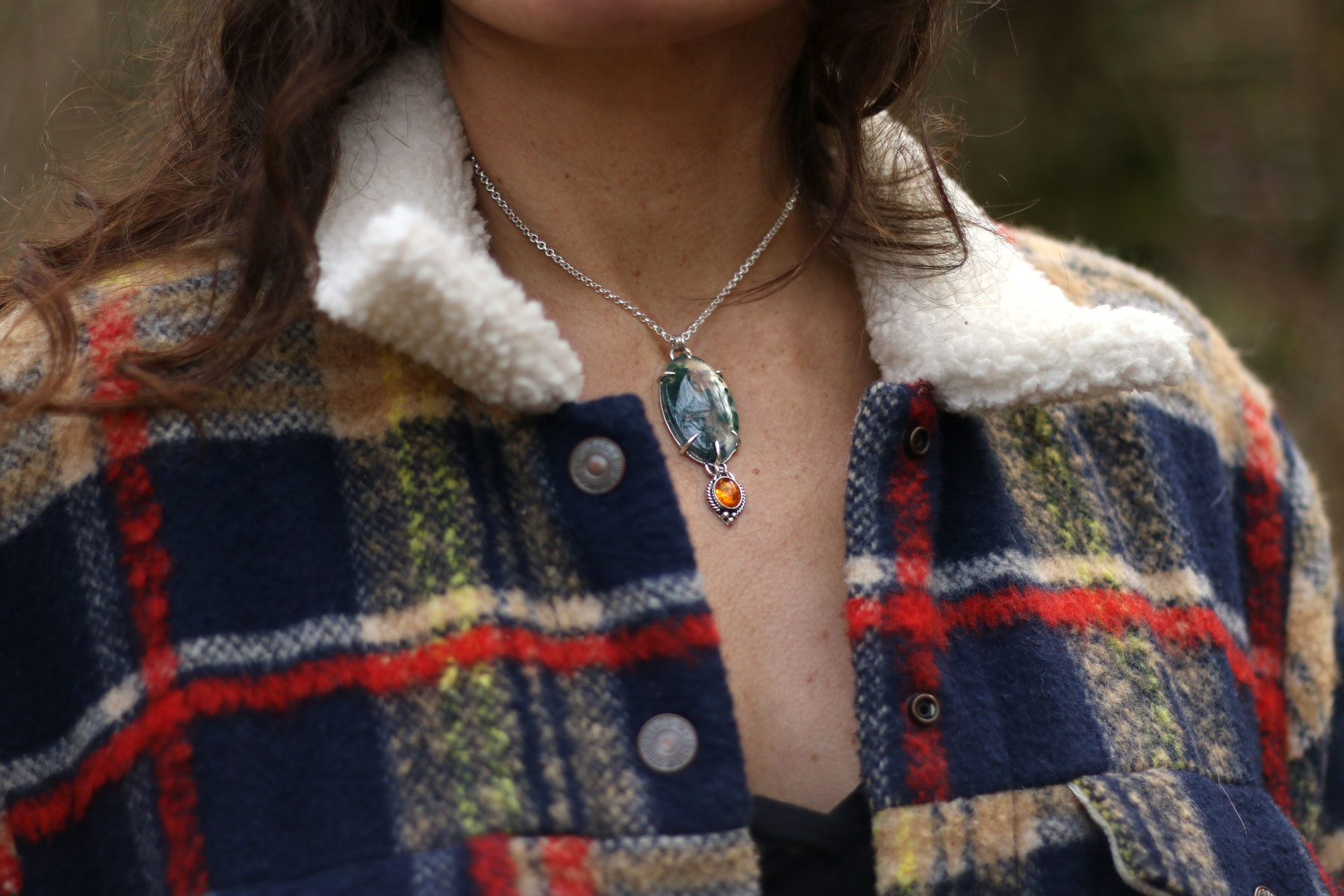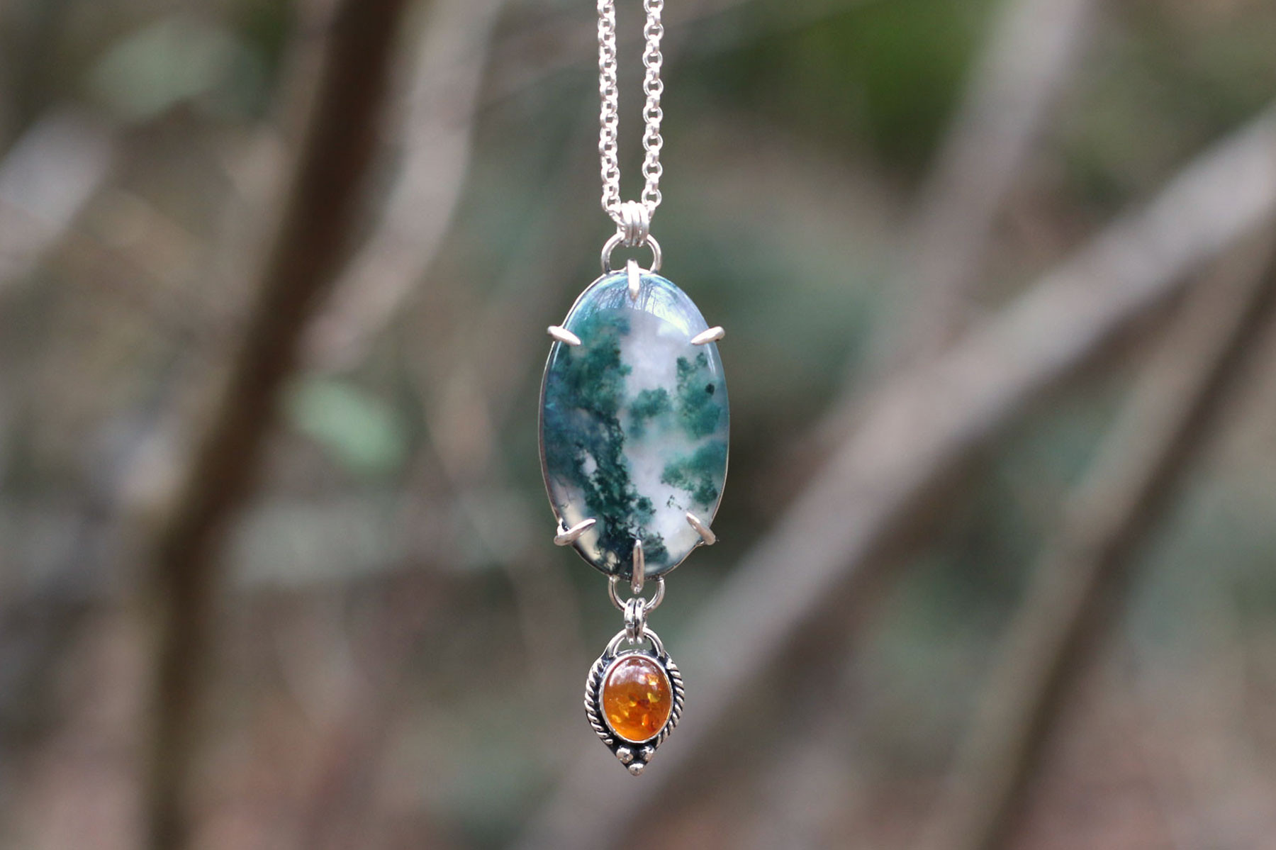 Colgante BOSQUE con AGATA MUSGOSA y AMBAR
