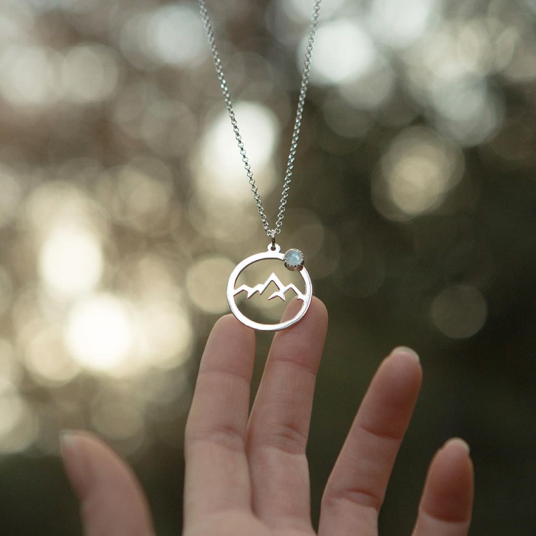 Para los amantes de la naturaleza este es el colgante perfecto, hecho con una silueta de una montaña y una pequeña piedrecita a elegir soldada en la parte superior. Cada montaña de cada colgante esta calada a mano una a una, no hay dos iguales, esta es la magia de la joyería artesanal.